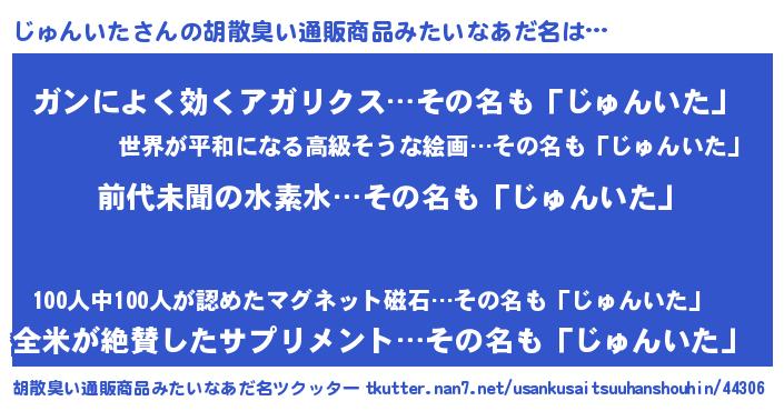 | ヘコむあだ名 | 『じゅんいた(苦笑)』『じゅお』 |