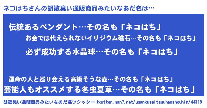 | ヘコむあだ名 | 『ネコにゅー』『ネコっちょ』 |