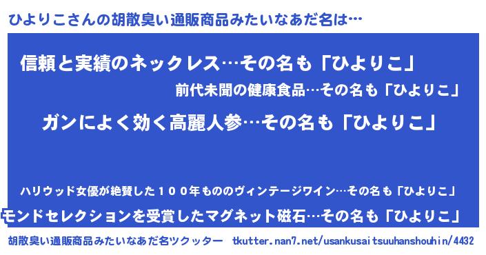 | ヒーロー風カッコイイあだ名 | 『ウルトラ戦士ヒヨリコ』『黄金騎士ヒヨ』 |