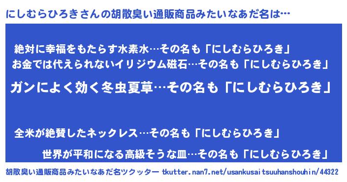 | 意味不明あだ名 | 『自称にしむらひろき』 |