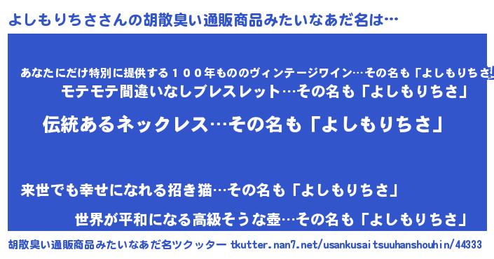 | 意味不明あだ名 | 『とにかく怪しいよしもりちさ』 |