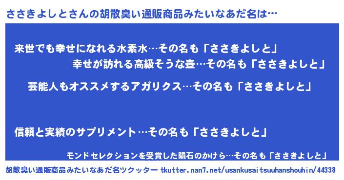 | 意味不明あだ名 | 『自称ささきよしと』 |