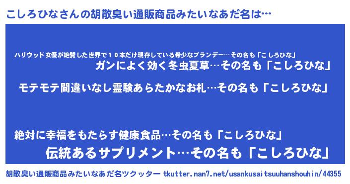 | 意味不明あだ名 | 『ペロリンこしろひな』『自称こしろひな』 |