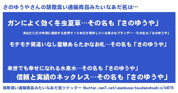 さのゆうやさんの胡散臭い通販商品みたいなあだ名をツクッター!