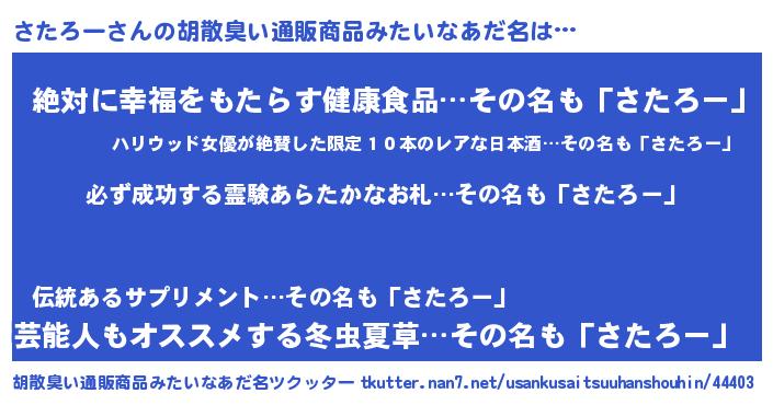 | 意味不明あだ名 | 『ペロリンさたろー』『永久保存さたろー』 |