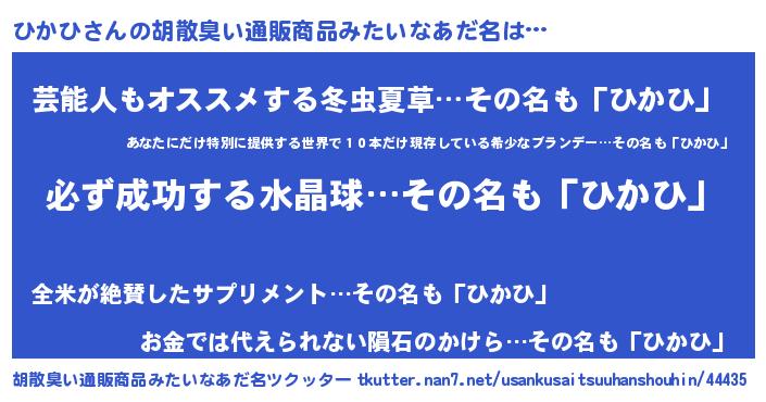| ヘコむあだ名 | 『ひかにゅー』『ひかっ子』 |