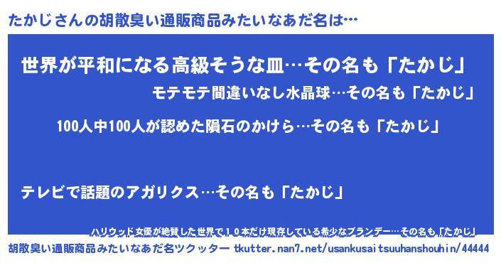 | 意味不明あだ名 | 『眠気覚ましガムたかじ味』『自称たかじ』 |