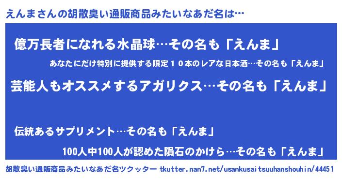 | 意味不明あだ名 | 『自称えんま』『ペロリンえんま』 |
