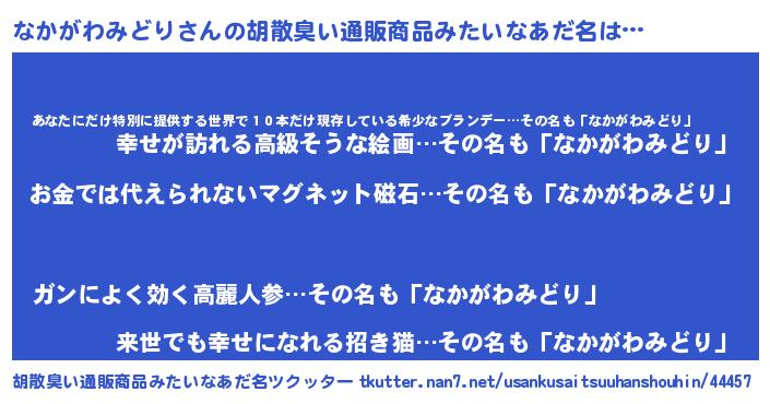 | 欧米人風あだ名 | 『なかがわみどり・ステッグマイヤー』 |