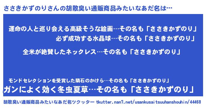 | 意味不明あだ名 | 『とにかく怪しいささきかずのり』 |