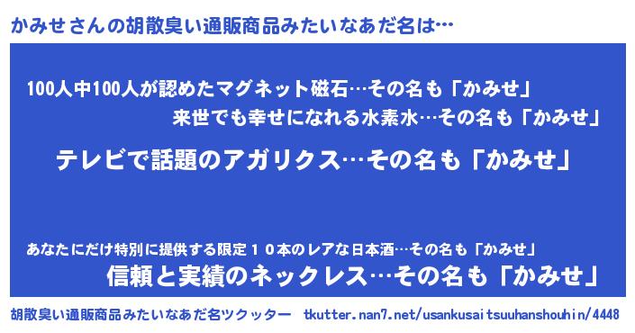 | 意味不明あだ名 | 『自称かみせ』『眠気覚ましガムかみせ味』 |