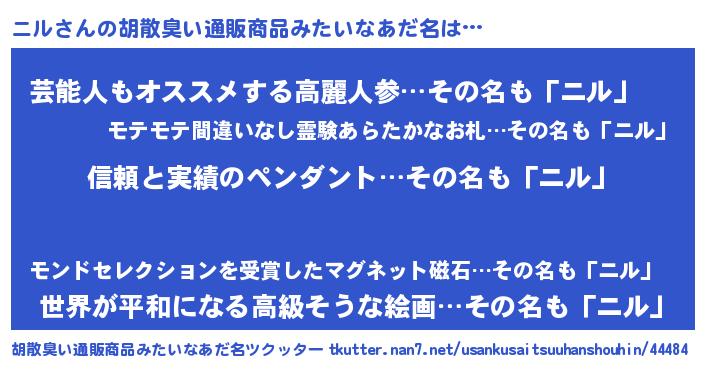 | ポケモン風あだ名 | 『ヒニル』『ニルキング』『ニルダネ』 |