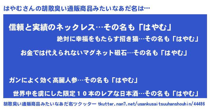 | 意味不明あだ名 | 『眠気覚ましガムはやむ味』『自称はやむ』 |
