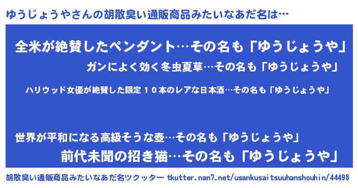| 意味不明あだ名 | 『住所不定無職ゆうじょうや(53歳)』 |