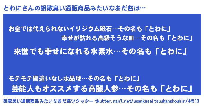 | ヘコむあだ名 | 『とわに(苦笑)』『つくし』 |