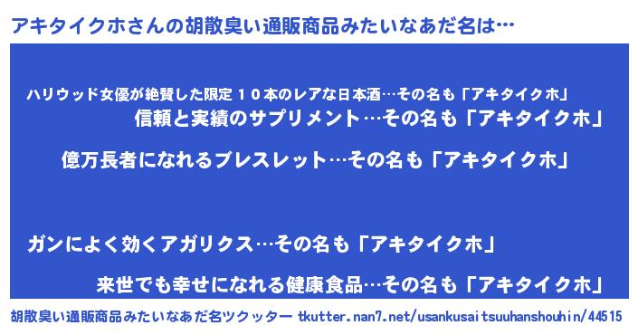 | 欧米人風あだ名 | 『マイケルアキタイクホ』 |