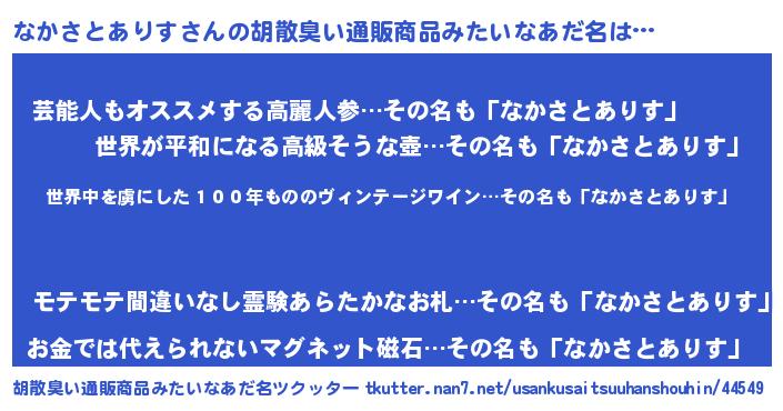 | 欧米人風あだ名 | 『なかさとありす・ステッグマイヤー』 |