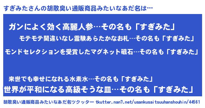 | ヒーロー風カッコイイあだ名 | 『慈愛の使者すぎみた』『ネオスギミタ』 |