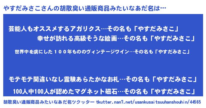 | 意味不明あだ名 | 『住所不定無職やすだみさこ(8歳)』 |