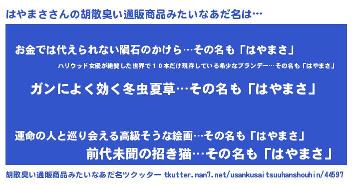 | 意味不明あだ名 | 『自称はやまさ』『永久保存はやまさ』 |