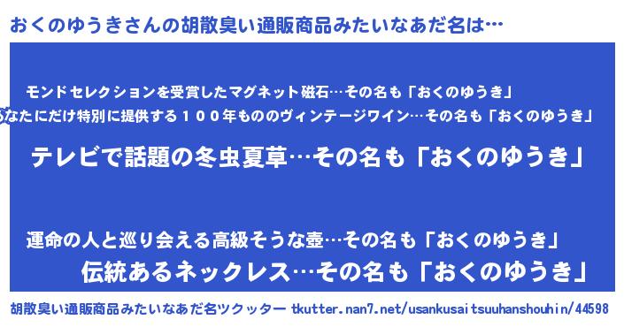 | 意味不明あだ名 | 『自称おくのゆうき』 |