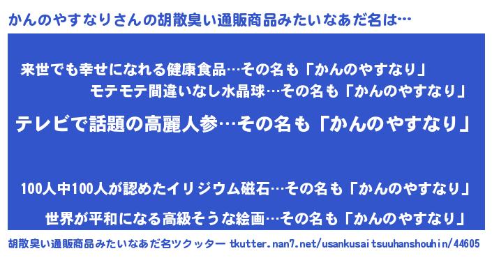 | 意味不明あだ名 | 『自称かんのやすなり』 |
