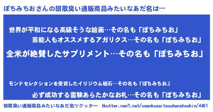 | 意味不明あだ名 | 『とにかく怪しいぽちみちお』 |
