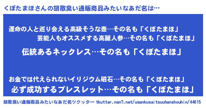 | 意味不明あだ名 | 『とにかく怪しいくぼたまほ』 |