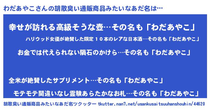 | 肩書あだ名 | 『わだあやこ上級大将』『わだあやこ店長』 |