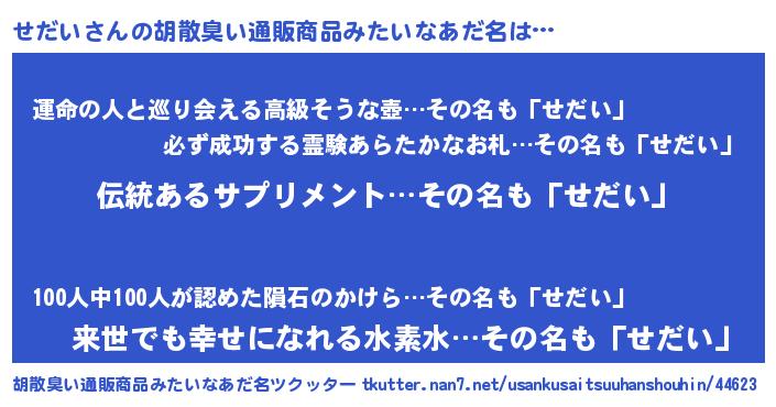 | 自動車の名前っぽいあだ名 | 『セルトダパン』『セクア』『センR』 |