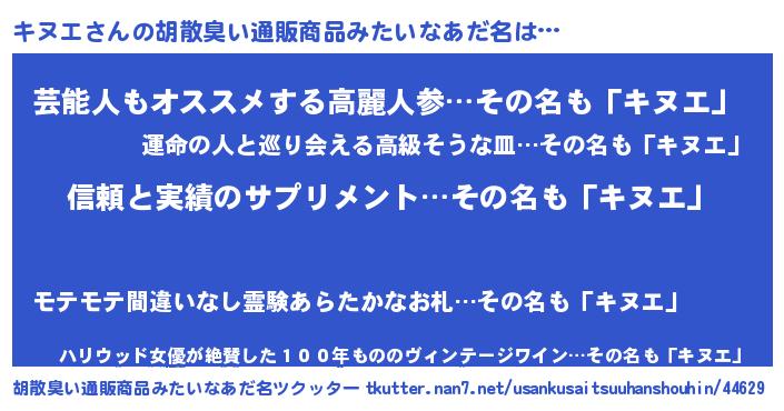 | ピコ太郎風あだ名 | 『キヌ次郎』『ピキ次郎』『キコ一郎』 |