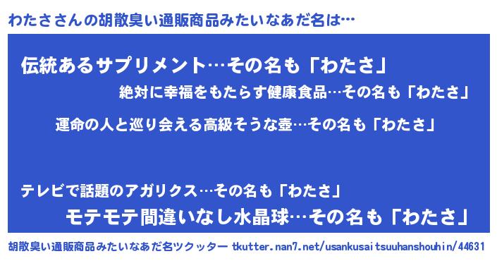 | ヘコむあだ名 | 『酢こんぶ』『わたを』『わたもー』 |