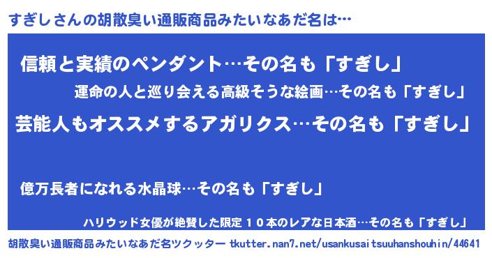 | 意味不明あだ名 | 『自称すぎし』『とにかく怪しいすぎし』 |