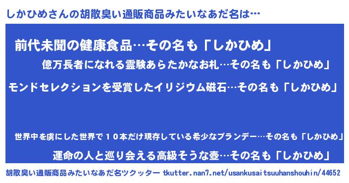 しかひめさんの胡散臭い通販商品みたいなあだ名をツクッター!