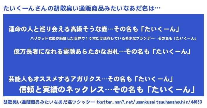 | ヘコむあだ名 | 『たいっふぃ~』『つくし』 |