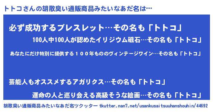 トトコさんの胡散臭い通販商品みたいなあだ名をツクッター!