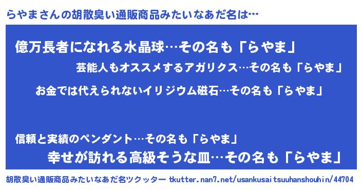 | 意味不明あだ名 | 『眠気覚ましガムらやま味』『自称らやま』 |