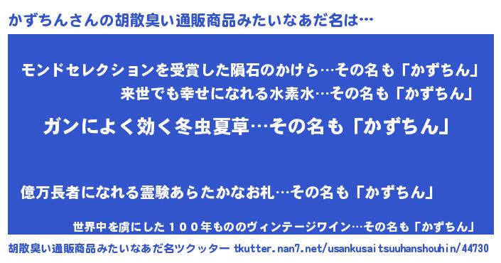 | ヘコむあだ名 | 『かずちん(震え声)』『かずっふぃ~』 |