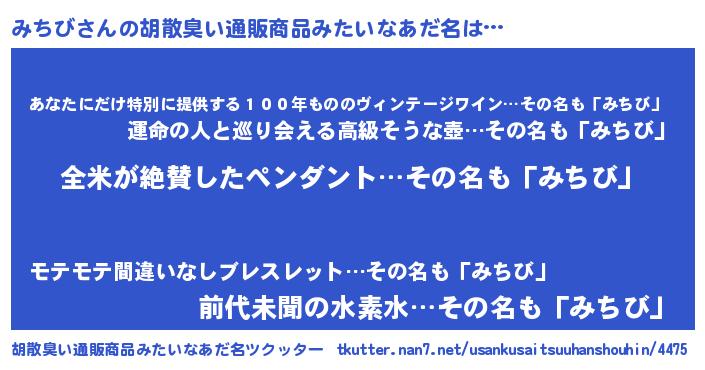 | 意味不明あだ名 | 『とにかく怪しいみちび』 |