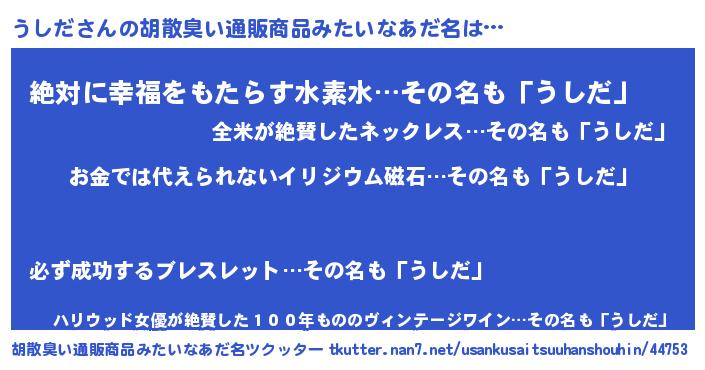 | ヒーロー風カッコイイあだ名 | 『愛の使者うしだ』『ネオウシダ』 |