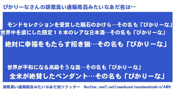 | ヘコむあだ名 | 『ぴかりーな(小並感)』『ぴかぷりん』 |