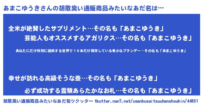 | 欧米人風あだ名 | 『あまこゆうき・ステッグマイヤー』 |