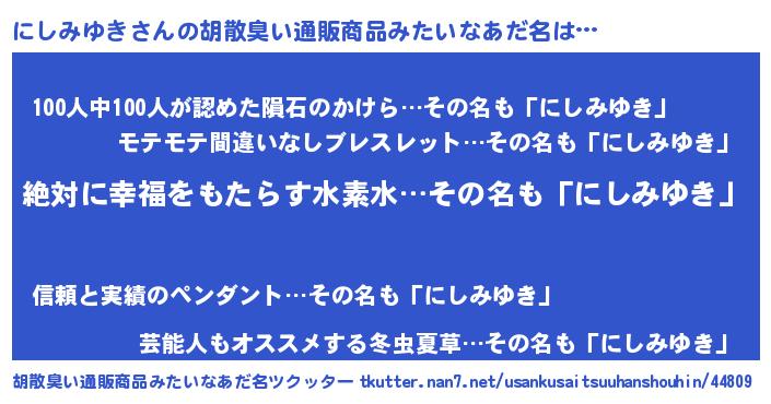 | 意味不明あだ名 | 『永久保存にしみゆき』『自称にしみゆき』 |