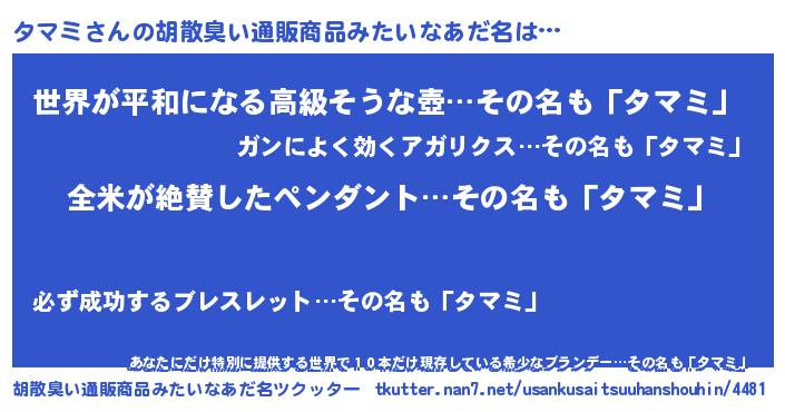 | 意味不明あだ名 | 『とにかく怪しいタマミ』『自称タマミ』 |