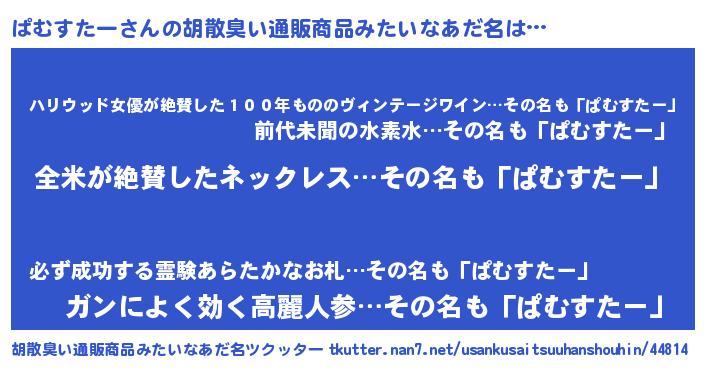 | ヘコむあだ名 | 『ぱむっ子』『ぱむすたー(笑)』 |