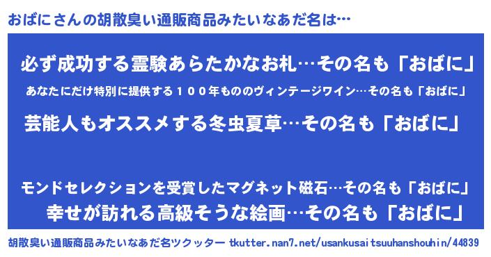 | 欧米人風あだ名 | 『ケンブリッジおばに』『マイケルおばに』 |