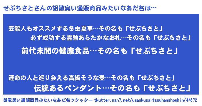 | ヘコむあだ名 | 『せぶちさと(爆)』『せぶぷりん』 |