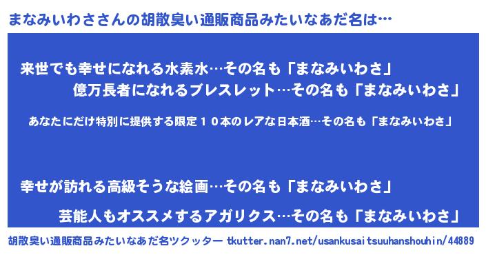 | 意味不明あだ名 | 『住所不定無職まなみいわさ(53歳)』 |