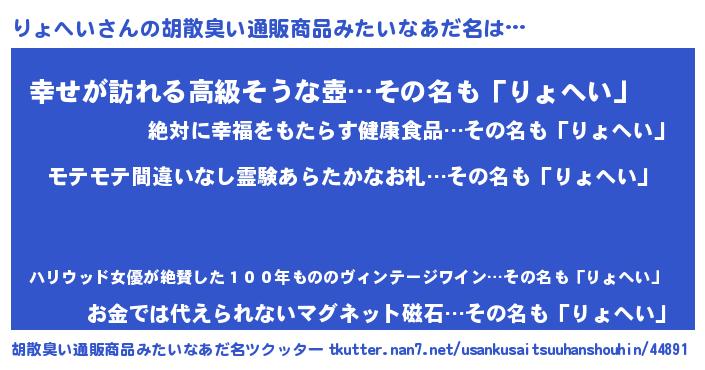 | 意味不明あだ名 | 『ペロリンりょへい』『永久保存りょへい』 |