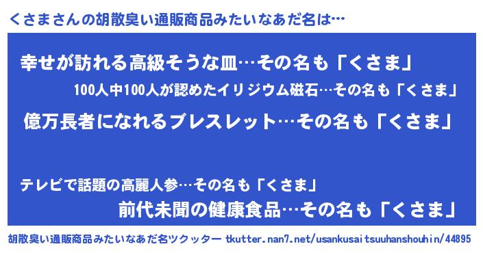 | ヘコむあだ名 | 『くさにー』『つくし』『くさま(笑)』 |